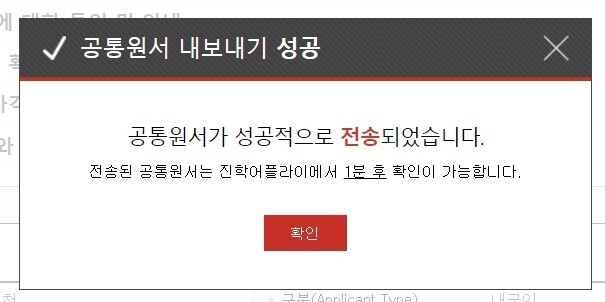 내보내기를 클릭하면 화면이 갑자기 블러처리됩니다. 놀라지 마시고 스크롤을 위로 올리시면 아래 화면이 나옵니다. 이 화면이 나왔다면 '공통원서작성'은 끝났습니다.