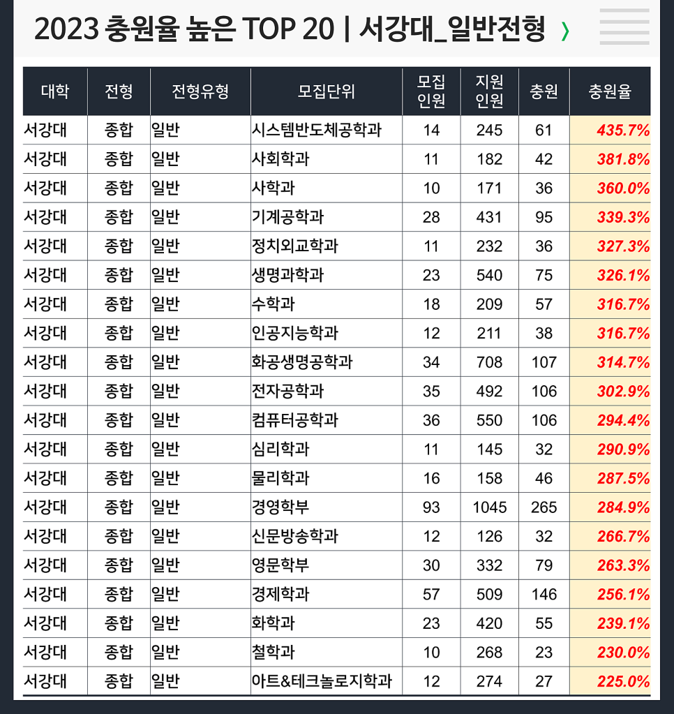 | 2023 충원율 높은 과 : 서강대 고교장추천 (3) | 2023.07.11 |