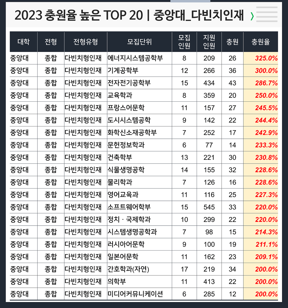 | 2023 충원율 높은 과 : 중앙대 탐구인재 (10) | 2023.07.12 |