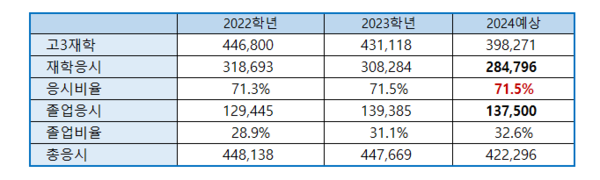 재학생수는 40만명이지만 수능응시률은 71.5%입니다.