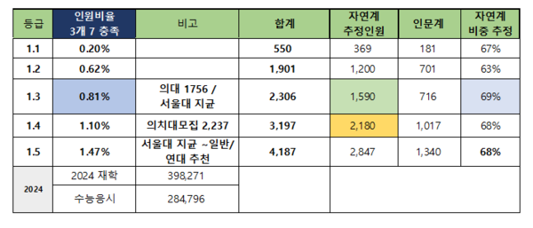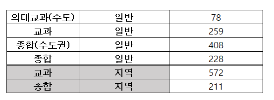이런 구조가 왜 중요한 가 하면 사실 상위권 입결이 인원구조로 결정되기 때문입니다