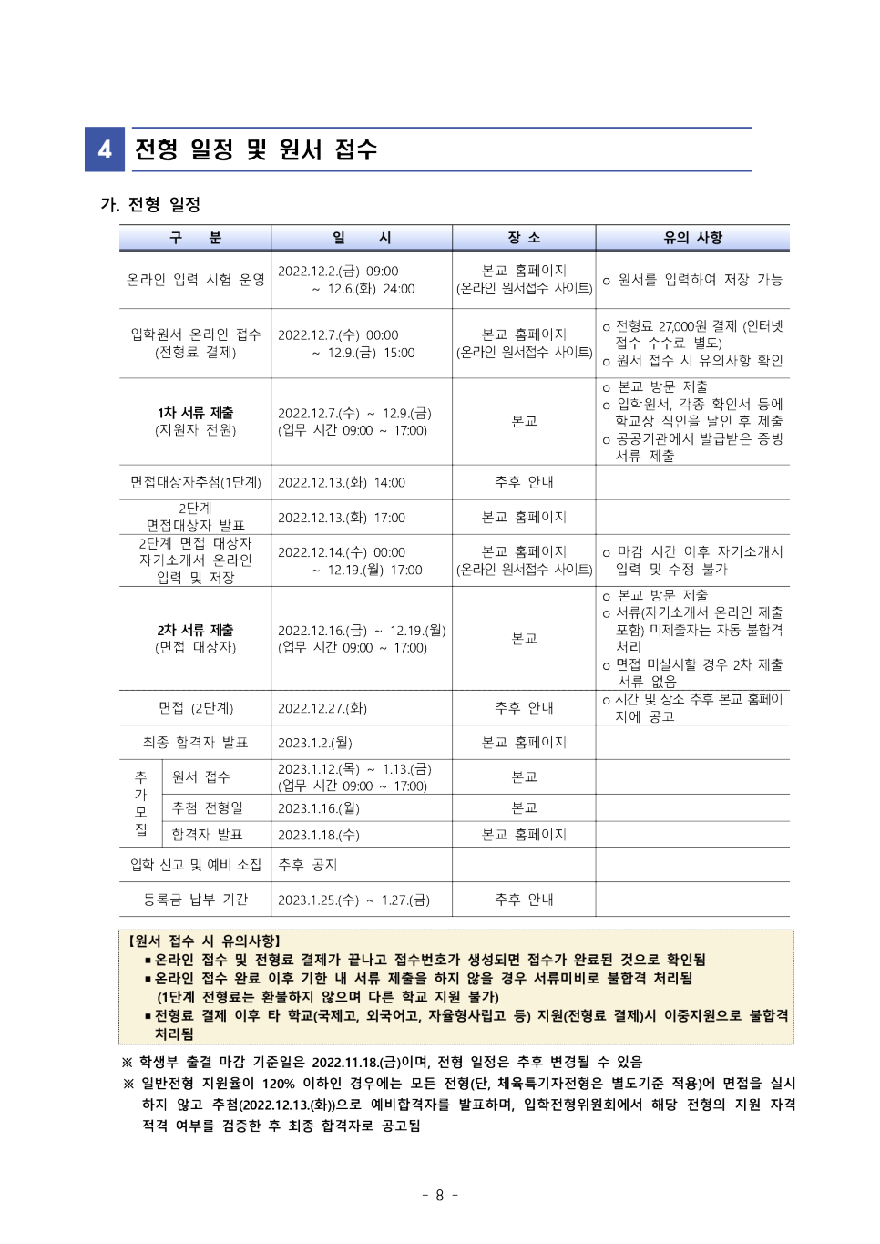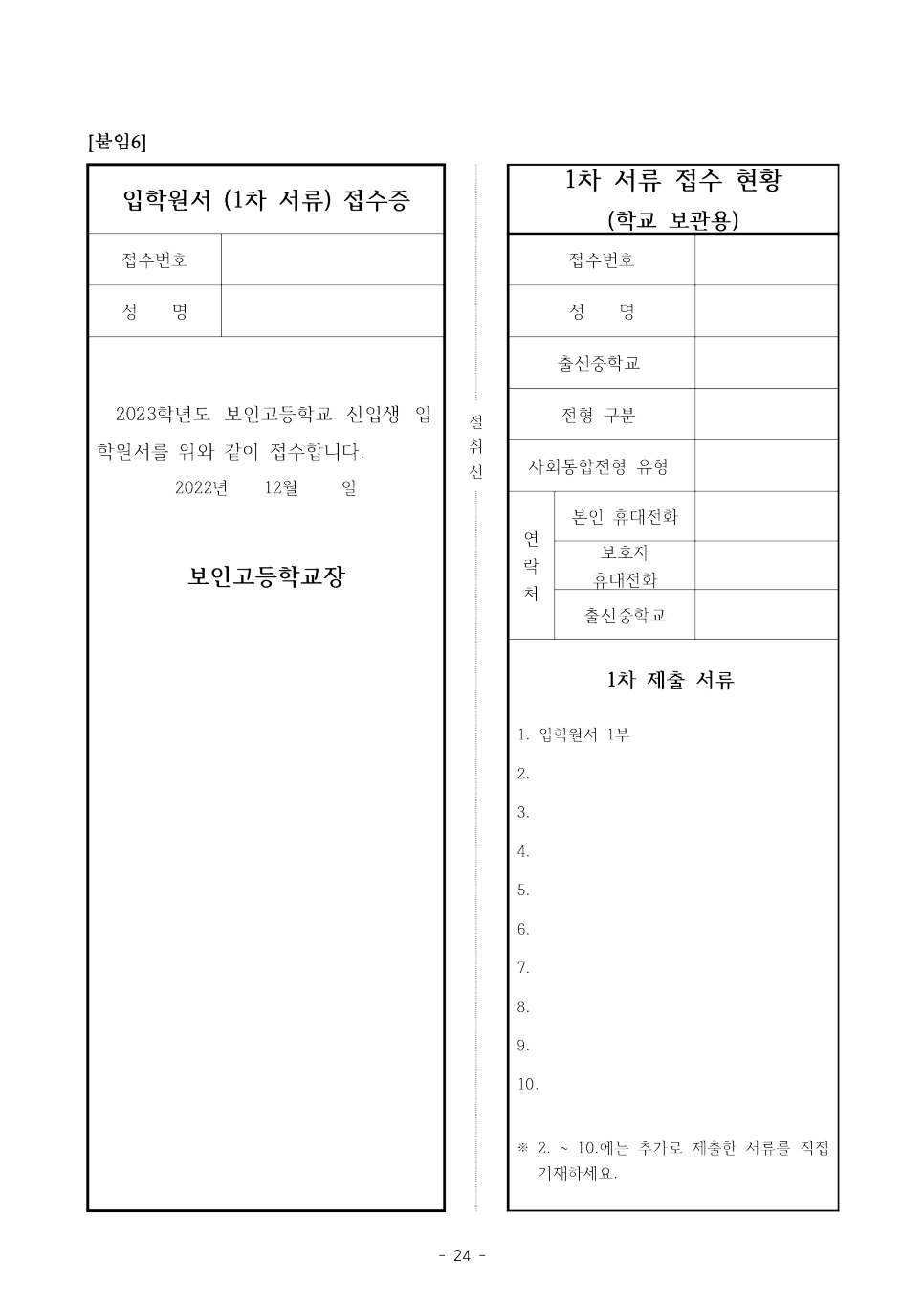 1차에서 제출하는 서류는 일반전형의 경우, 입학원서,주민등록등본이 기본서류입니다.