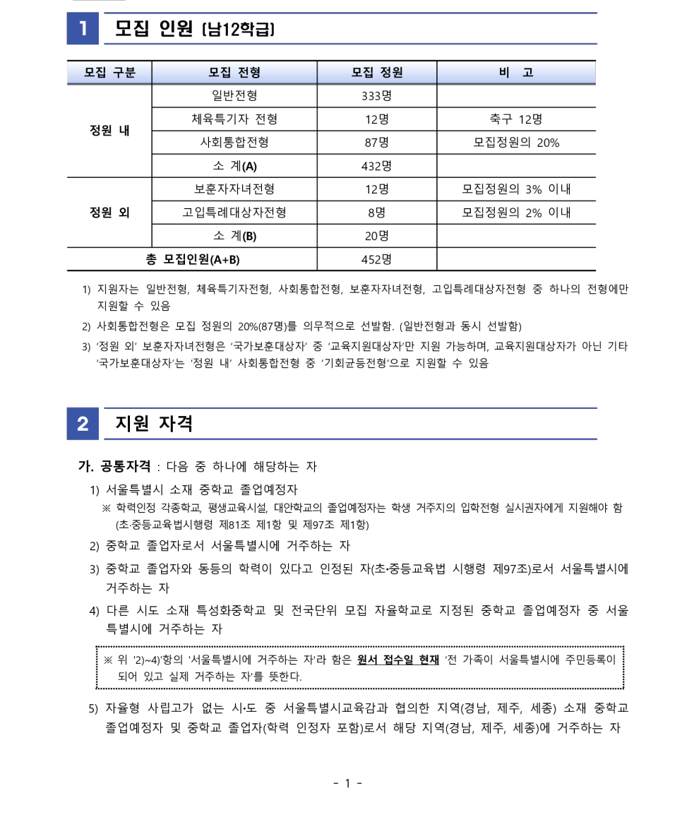 보인고는 1차 서류전형은 추첨제입니다.