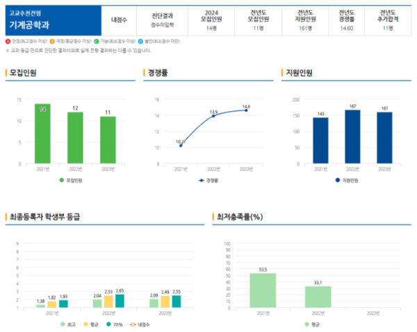 교과전형에서 최저충족률이 23 데이터는 공개가 되지 않았습니다