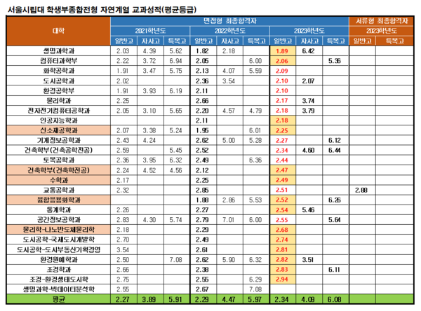 종합전형은 시립대가 우리나라에서 유일하게 고교유형별 평균을 발표합니다.