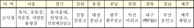 경북은 대구 과학기술고, 경남은 부산 동인고, 제주는 제주제일고 입니다.