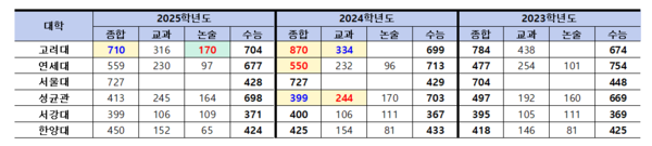 고대도 종합전형에서 입결관리를 할려면 모집인원을 줄여야 되겠다라고 생각을 했습니다. 그래서 논술을 만들었습니다.