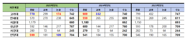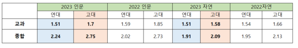 지금은 통합수학이후 고대가 최저가 높아서 인문의 차이가 커졌습니다.