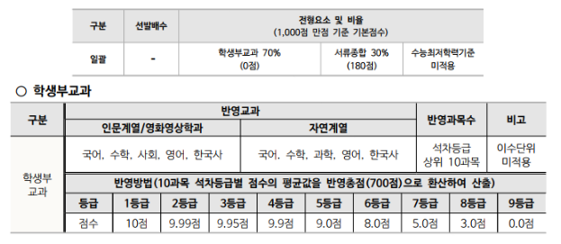 회색 음영표시는 학생부종합전형