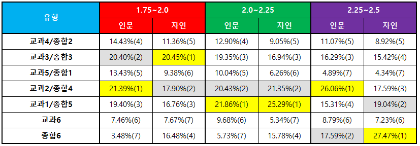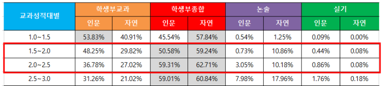❙ 내신등급 1.75~2.5구간