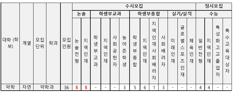 <2024 고려대 약대 모집인원>