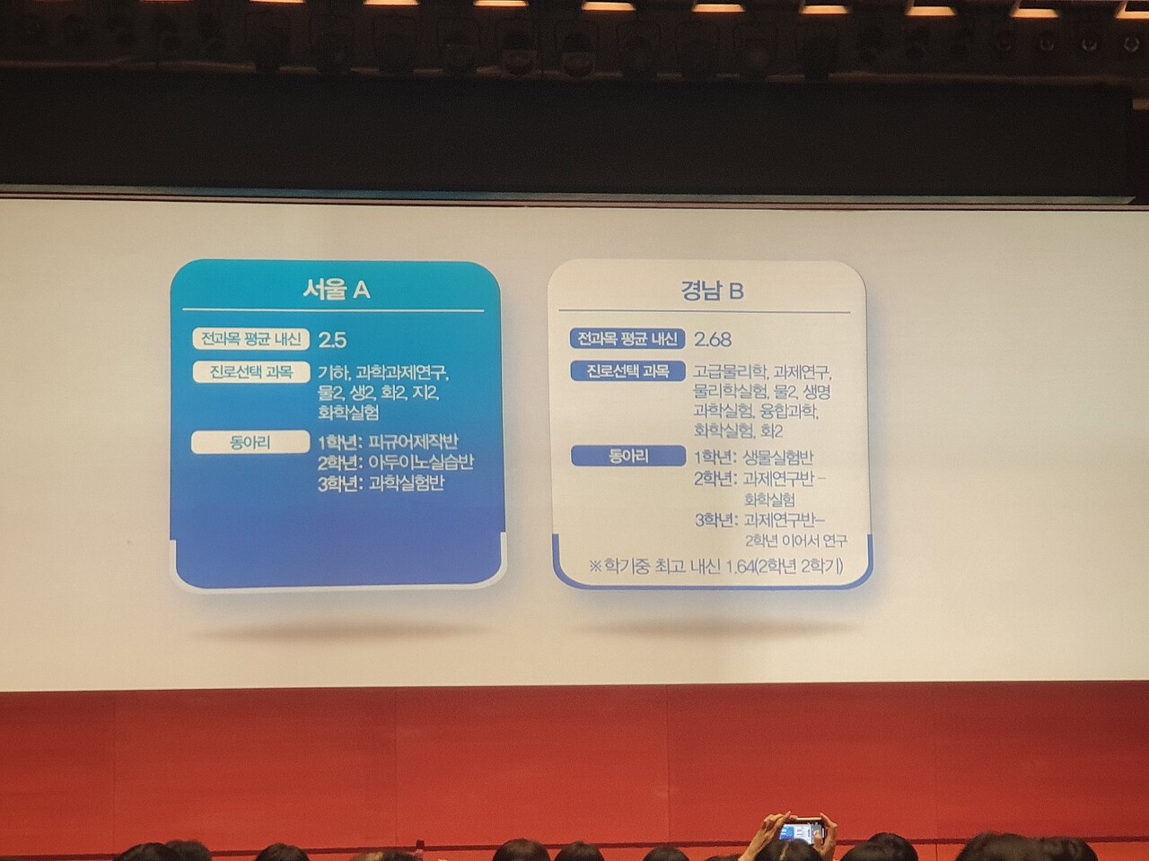 고교별 합격자 현황인데 이번에 과학인재(1차서류 7배수,2차는 30프로 제시문면접 녹화로진행)가 신설되어 영재고 과학고들이 빠져서 일반고가 더 늘어날거라 예상하신다네요